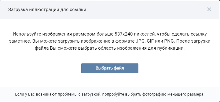 Нажав на этот ярлык, у нас откроется окно загрузки фото. Обратите внимание на предупреждение: картинка должна быть больше 537x240 пикселей и обязательно в формате JPG, GIF или PNG.