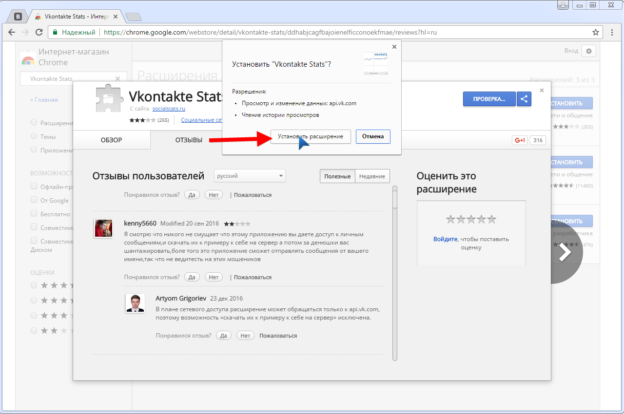 Можно посетить магазин дополнений для своего браузера и отыскать в нем плагин Vkontakte Stats, что актуально при использовании отличных от Хрома веб-обозревателей.