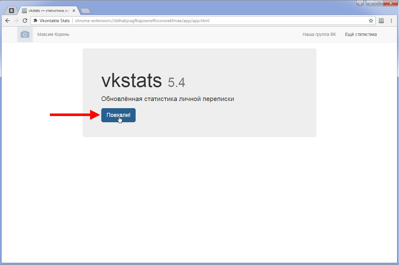 7. Берем к сведениям появившееся предупреждение и жмем «Поехали» для анализа переписки и формирования статистики личных сообщений.