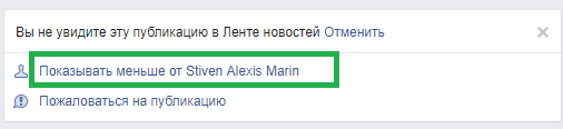 Тут же Вы сможете уменьшить количество показываемых новостей от этого пользователя.