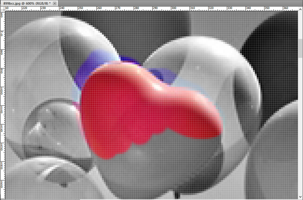 Увеличьте ту часть изображения, которую Вы хотите видеть в цвете. Не бойтесь делать слишком большое масштабирование, чем крупнее будет фрагмент, тем аккуратнее у Вас получится.