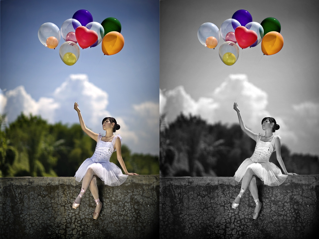 Как сделать фото чёрно-белым так, чтобы часть осталась цветной