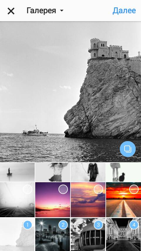 Однако сейчас можно просто воспользоваться функцией добавления нескольких снимков в одну публикацию. Это гораздо более удобно и интересно. Для этого Вам достаточно выбрать все нужные фотографии из галереи.