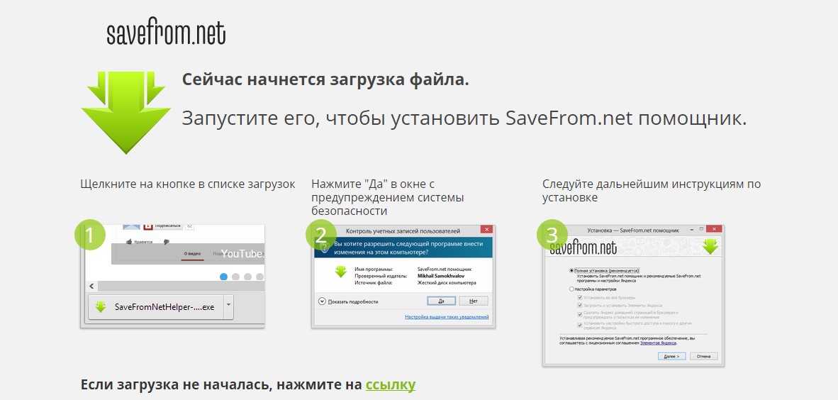 И опять одним из лучших вариантов будет SaveFrom.net. Тут, в первую очередь, нужно скачать само расширение с сайта. Следуя инструкциям, загрузите и установите софт на Ваше устройство.