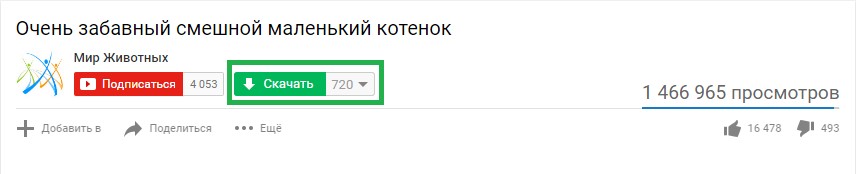 После успешной установки данного расширения, Вы получите возможность скачивать ролики напрямую с YouTube. Для этого нужно зайти само видео и прокрутить страницу вниз. Под названием появится новая кнопка «Скачать».