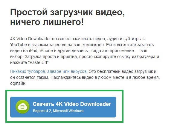 Если Вам, по каким-то причинам, не нравятся расширения, можно скачать специальные программы. Например, хорошим вариантом будет 4K Video Downloader. Он дает гораздо больший спектр возможностей, по сравнению с привычным скачиванием из браузера. Доступные такие функции: