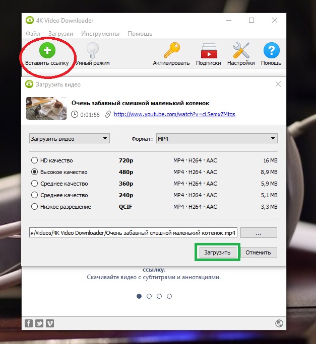 Ролик подгрузится автоматически, а программа предоставит все необходимые параметры для его сохранения.